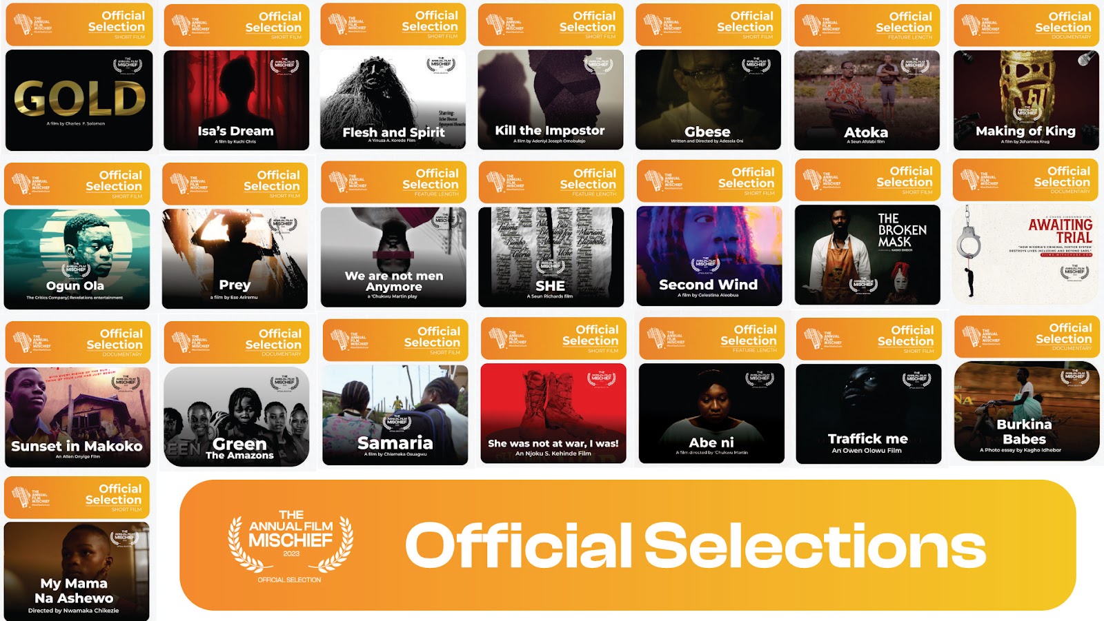The official selections include documentaries and short films like Kill the Imposter, Gbese, Ogun Ola, The Broken Mask, Samaria and My Mama Na Ashewo.