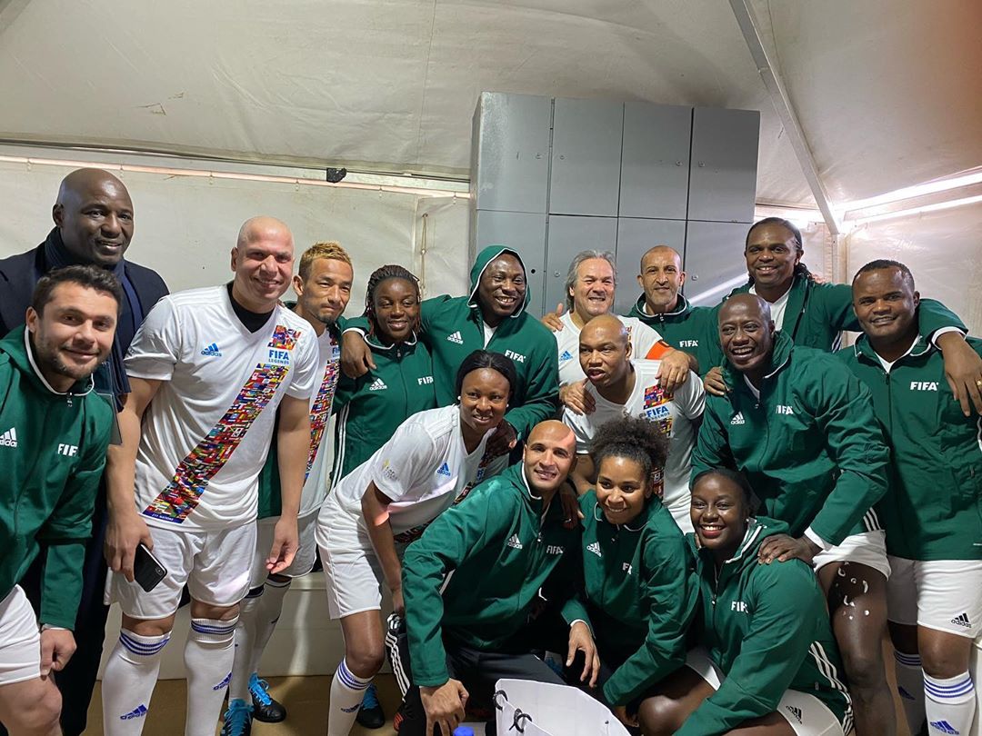 The World Legends' team was captained by Brazil legend Cafu and had notable players such as FIFA President Gianni Infantino, Julio Cesar, Juan Sebastian Veron, Portia Modise, Gaelle Enganamouit, Ahmed ‘Mido’ Hossam, Kalusaha Bwalya, Jacqueline Shipanga, Veronica Boquete and Elodie Thomis.