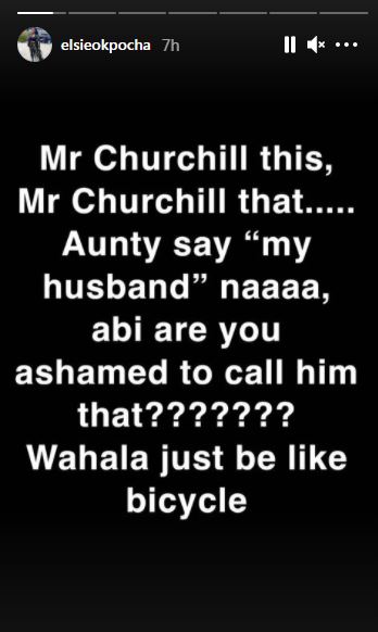 "Mr Churchill this, Mr Churchill that... Aunty say 'my husband' naaa, abi are you ashamed to call him that??????? Wahala just be like bicycle," she wrote.