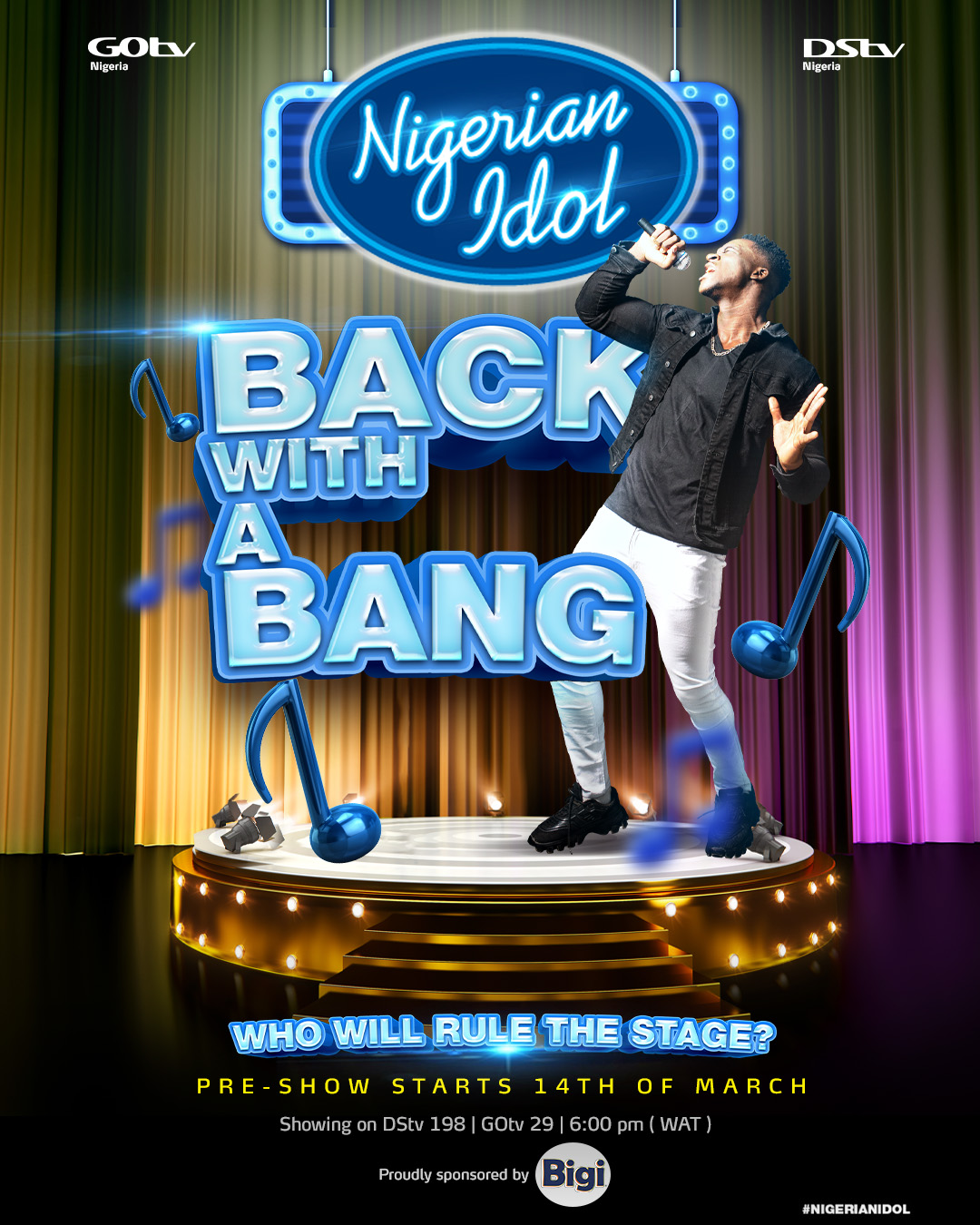 Nigerian Idol season 6 will air on DStv channel 198 & GOtv channel 29 starting March 14. Viewers can watch Nigerian Idol Season 6 via the DStv app on multiple devices at no additional cost. The app is available for download on iOS and Android devices.