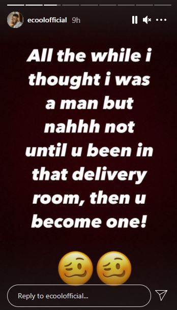"All the while I thought I was a man but nahhh until you been in that delivery room, then you become one," he wrote.