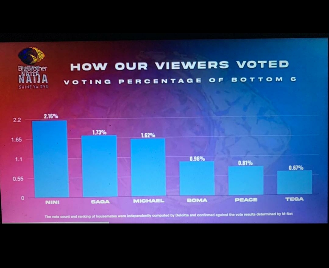 The housemate emerged in the bottom six list with less than one percent (0.81%) of the fan votes.