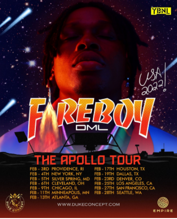 On November 18, 2021, award-winning Nigerian artist, Fireboy DML announced The Apollo Tour, his debut US tour as a headliner.