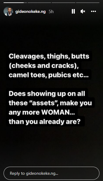 Gideon Okeke questions women who show off their cleavage and thighs on social media